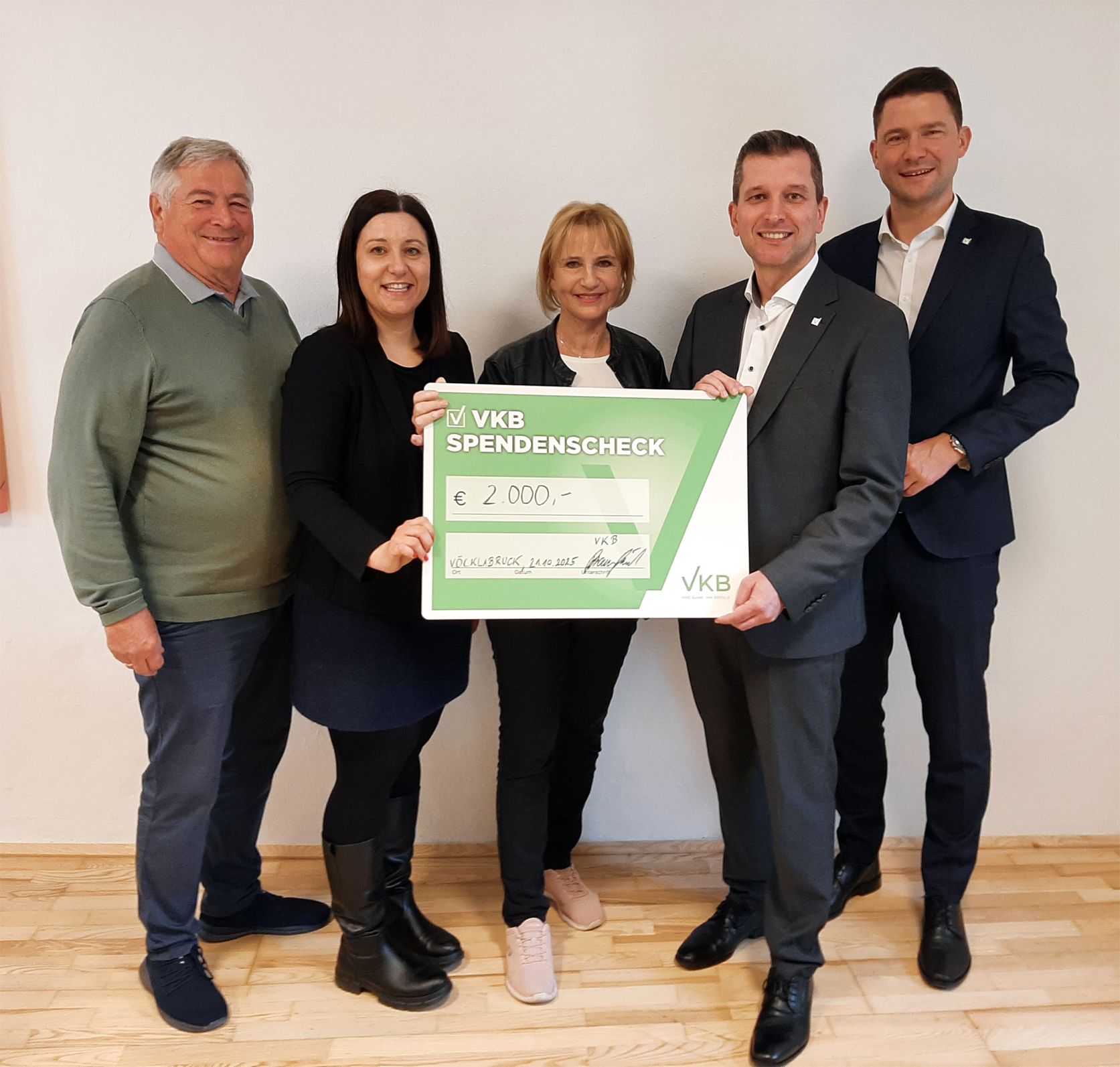 Die VKB-Bank beteiligte sich mit 2000 Euro an der Bausteinaktion der Sozialeinrichtung Mosaik für das neue Tageszentrum für Wohnungslose. VKB-Vertriebsdirektor Firmenkunden OÖ-Mitte Patrick Klostermann und Jürgen Bauernfeind, Filialdirektor der VKB Vöcklabruck, übergaben die großzügige Spende kürzlich im Rahmen einer Besichtigung des Tageszentrums. „Als Bank für den privaten und unternehmerischen Mittelstand tragen wir eine besondere gesellschaftliche Verantwortung. Daher engagieren wir uns aus Überzeugung für Organisationen, die Menschen in schwierigen Lebenssituationen helfen – in diesem Fall die Sozialeinrichtung Mosaik, die mit dem Tageszentrum eine wichtige Lücke im Angebot schließt “, so Klostermann und Bauernfeind.