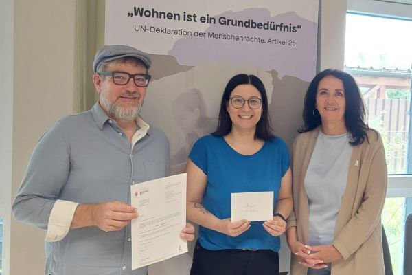 Die VKB-Bank beteiligte sich mit 2000 Euro an der Bausteinaktion der Sozialeinrichtung Mosaik für das neue...