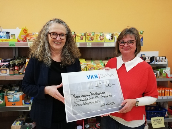 Die Schüler*innen der Mittelschule Timelkam konnten nach zwei Jahren Pause wieder zu einem Weihnachtskonzert einladen. Die Hälfte des Erlöses (400,00) aus den frewilligen Spenden wurde an den KORB übergeben. Die Lehrkörper und die Familie Kasbauer rundeten den Betrag noch auf. Schlussendlich konnte Frau Judith Pichlmann in Summe 700,00 überreichen.