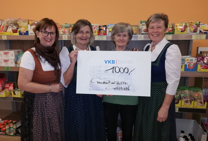 Der Ostermarkt, der Weihnachtsmarkt oder der "Tag der Tracht" ermöglichen den Mitgliedern der Goldhaubengruppe Gampern Einnahmen zu lukrieren. Mit viel Einsatz und Fleiß erwirtschaften die Damen Einkünfte mit denen sie soziale Projekte in der Region unterstützen. Die großzügige Spende in der Höhe von 1.000,00 haben Helga Huber und Marianne Habring für unsere Einrichtung übernommen - beide in ihrer Doppelfunktion als Mitglied der Goldhaubengruppe und ehrenamtliche Mitarbeiterin im Korb.