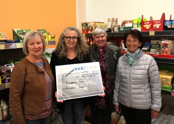 Mit dem Erlös aus dem Erntedankfest der katholischen und evangelischen Pfarrgemeinden wurden wieder soziale Einrichtungen in der Stadt Vöcklabruck unterstützt. Der KORB wurde mit einer Spende in der Höhe von 400 Euro bedacht. Das MOSAIK erhielt 200 Euro. v.l.n.r: Veronika Nagl, Gabriele Brandstetter, Gertrud Time und Renate Mahringer.